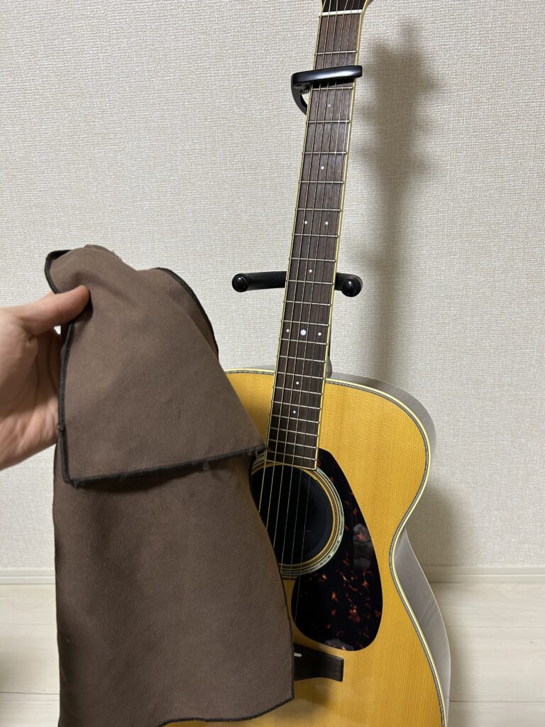 ギターは弾いていると手汗等で汚れて、サビてくるので定期的に拭く必要があります。