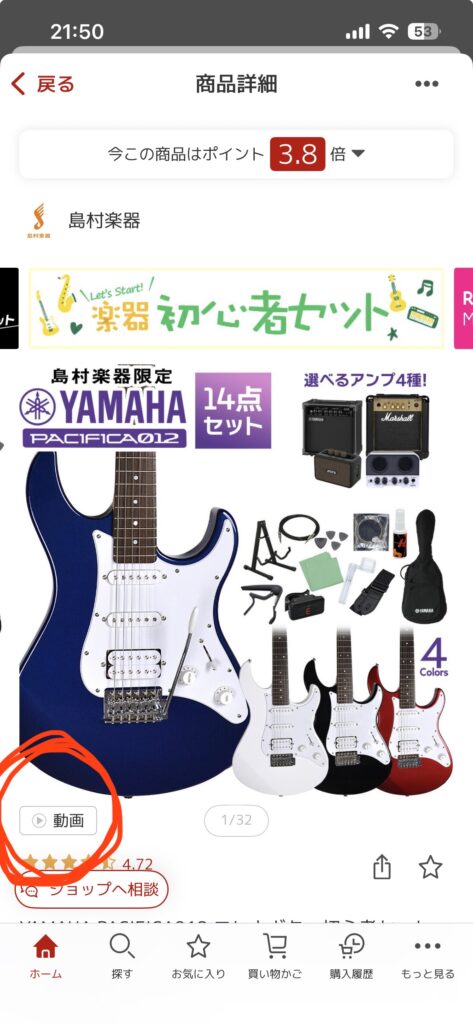 上記の楽天リンクをクリックして、スクリーンショット画面の赤線で囲った部分にPACIFICAの公式紹介動画があります。百聞は一見に如かず。素晴らしいギターであることが分かるはずです。