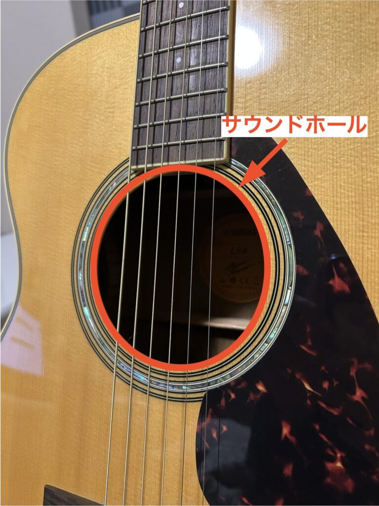 私の所有しているYAMAHA LS6はサウンドホールの直径が103mmです。