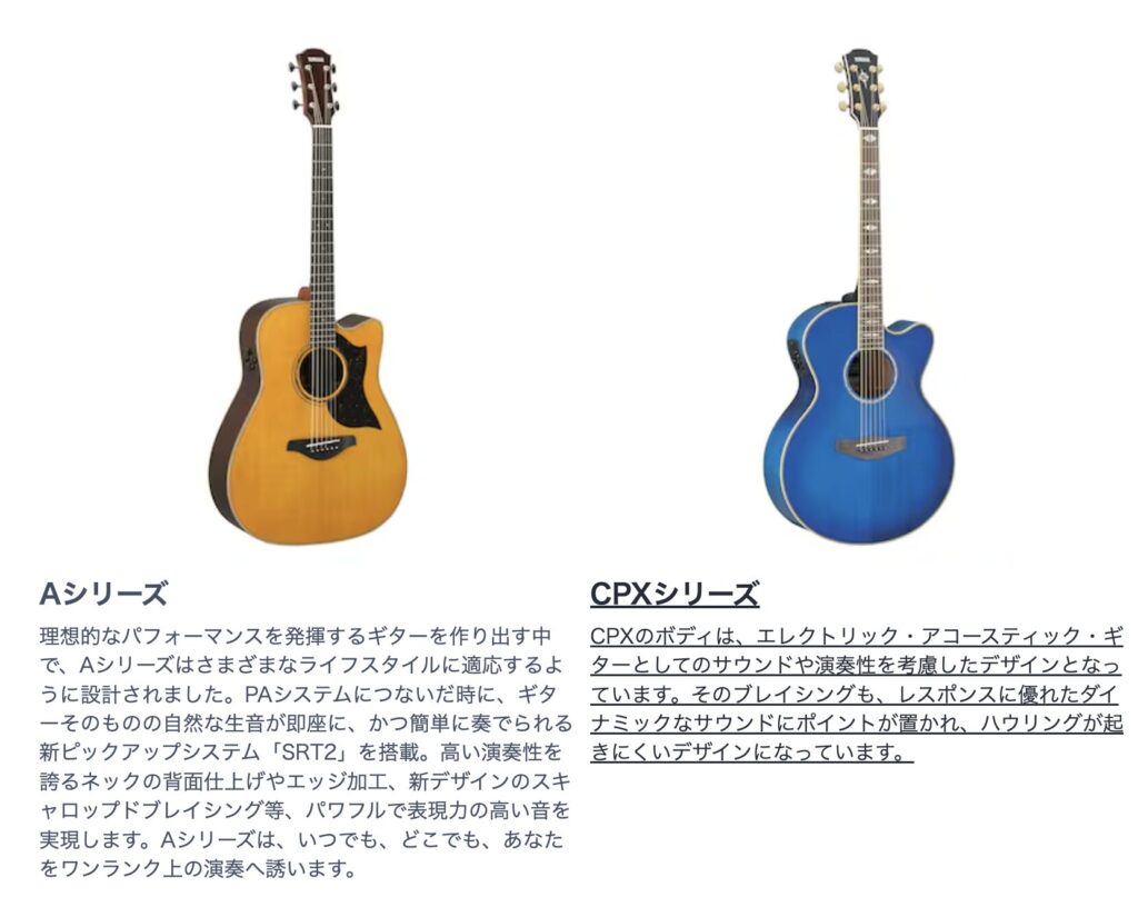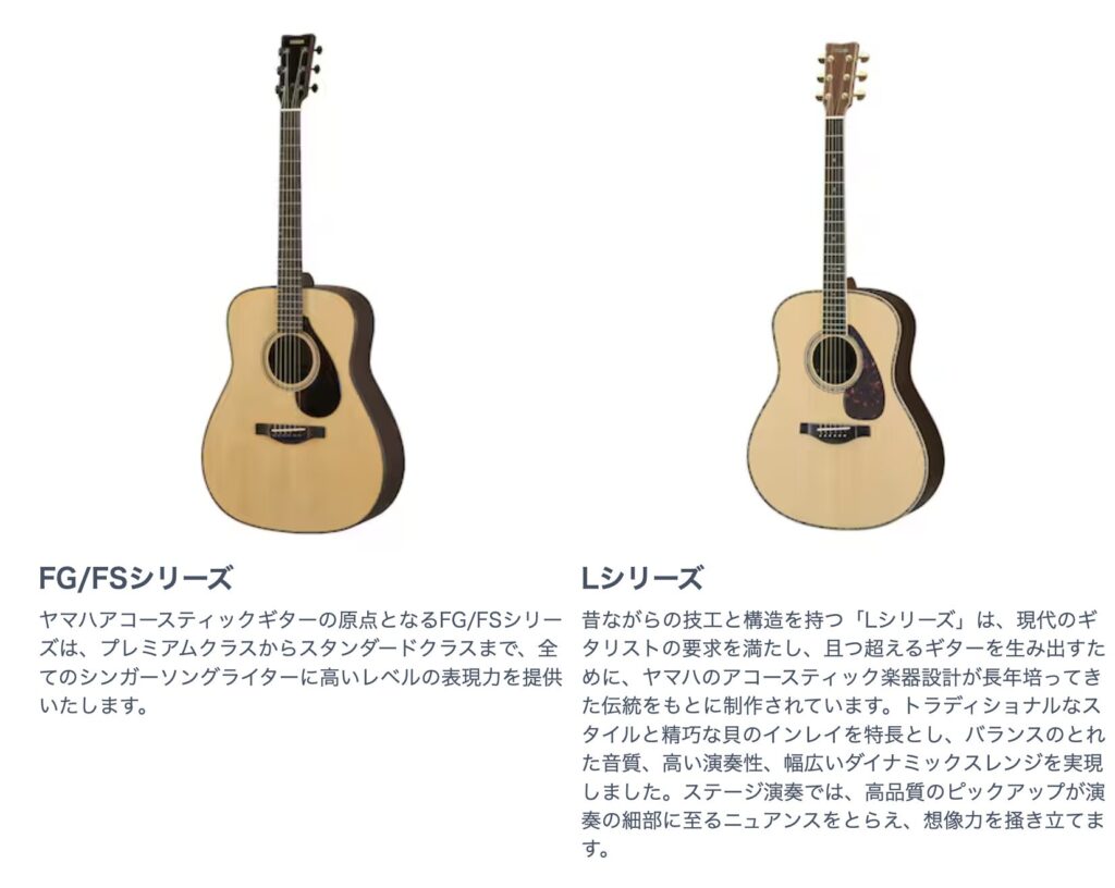 参考までにYAMAHAのアコギで対応しているシリーズをまとめました。