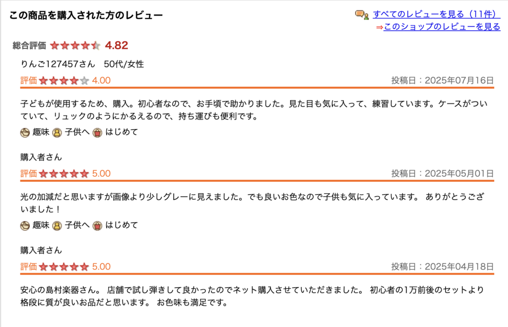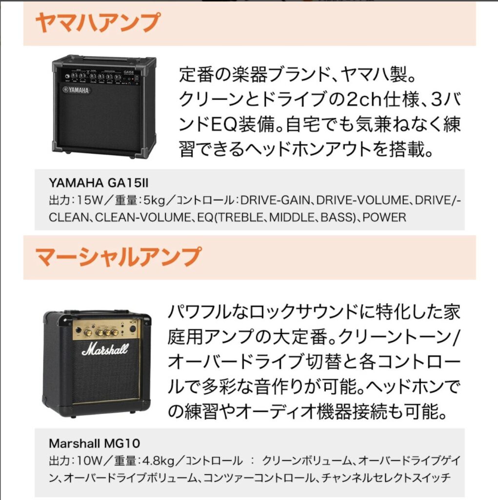 アンプが4種類から1つ選べる商品ですが、私は昔「ヤマハアンプ(画像と同じもの)」を自宅練習用として使っていました。練習用としては全く問題なく使用できるので、おすすめです。